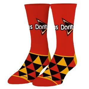 Cool Socks, Men's Funny Graphic Novelty Sock, Doritos Nacho Cheese, Adult Large. Cool Socks was solely established to dismantle the status quo and to represent all aspects of being yourself. Whether it is the design of our socks, the messages we advocate, or the people we represent, we're always supporting the right to express ourselves and Be You, Be ODD. Knit from a thick, comfortable cotton and elastic/ spandex blend for a breathable, yet stretchy fit. Say goodbye to tired toes and hello to happy feet. These fun novelty socks make great gifts for everyone. These fun novelty accessories make great gifts for dads, friends, coworkers, or anyone else. We take great pride in our unique apparel merchandise featuring everyone's favorite character, logo, movie, TV show, brand, saying, or theme.