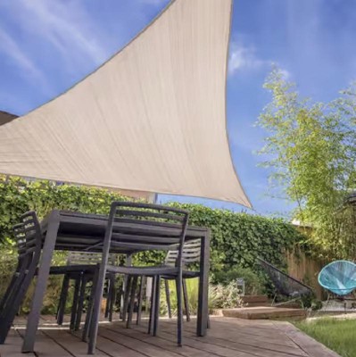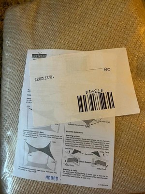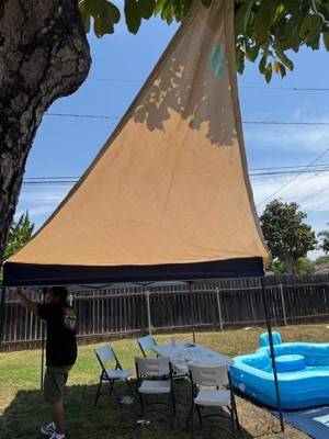 [This review was collected as part of a promotion.] I received this product from Influenster. I have an outdoor table which is up against my kitchen bay window so an umbrella wouldn't fit in that space. This sail shade is perfect. It's triangular and I anchored two corners to the soffit along the house and tye third to the metal cage of the lanai. This came with high quality mounting hardware, and it feels like it will last a long time. Fantastic!