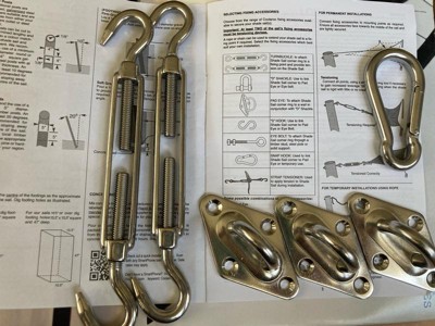 Thank you for sharing your feedback. We’re truly sorry that your experience didn’t meet expectations, and we appreciate you bringing these specific concerns to our attention. Our standard Coolhaven Shade Sail products do often require separately purchased hardware to mount them, especially if you're using poles instead of existing structures. According to our specifications, the sail itself includes stainless steel corner “delta” or D‑rings, but the mounting hardware (e.g., turnbuckles, snap hooks, pad eyes) typically isn’t included unless ordered as part of a dedicated hardware kit. Accessories, including installation hardware, are sold separately. I completely understand how this can feel misleading if the documentation suggests multiple attachment options like S‑hooks without clarifying they're extras. Our shade sails are made from high-density polyethylene (HDPE) with mono‑yarn knitting technology, designed to block up to 95% of UV rays while remaining breathable and weather-resistant. Although this ensures functionality and longevity, the fabric can appear textured or rustic—sometimes described as “straw-like.” I’m sorry that the look didn’t match your aesthetic expectations. Thank you again for your honest feedback this helps us improve.