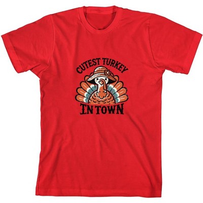 Coolest Turkey In Town Youth Red Crew Neck Short Sleeve Tee-Small