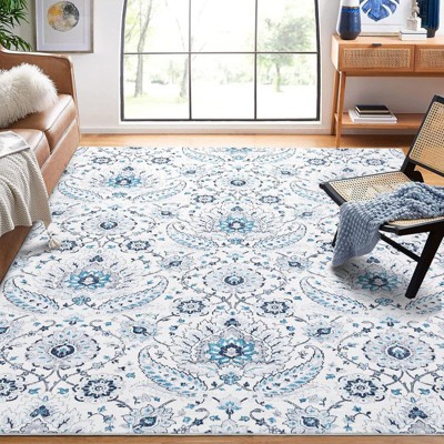 Coolmee 10'x13' Area Rug for Living Room Washable Large Modern Soft Non Slip Carpet Indoor Thin Low Pile Carpets for Bedroom Home Office Blue