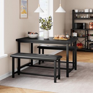 - Dining Table Set for 4: The set features comfy upholstered benches with thick cushions. Crafted from premium MDF board and sturdy steel, the benches and table combine durability with a sleek finish that complements a variety of home decor styles.