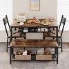 Coolmee 47" Rectangular Dining Set for 4 - Table, 2 Chairs & Storage Bench with Wine Rack,Retro color