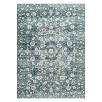 Coolmee 5'x7' Area Rug Living Room Washable Modern Soft Non Slip Carpet Indoor Thin Low Pile Carpets for Bedroom Dining Table Home Office Green