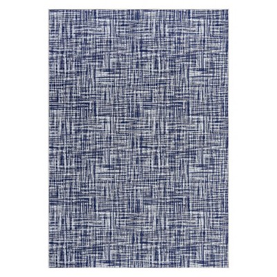 Coolmee 5'x7' Washable Area Rugs for Living Room Non-Slip Low-Pile Soft Rug Minimalist Bordered Floor Carpet for Bedroom Dining Room Blue
