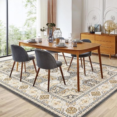 Coolmee 9x12 Machine Washable Area Boho Rug Non Slip, Super Strong, Ideal for High Traffic Areas in Bedroom, Living Room, KitchenBeige
