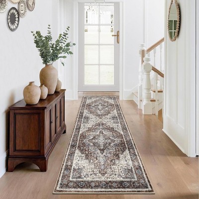 Coolmee Washable Area Rug for Living Room Bedroom Vintage Distressed Rustic Large Carpet Non-Slip Low Pile Soft Throw Rug
