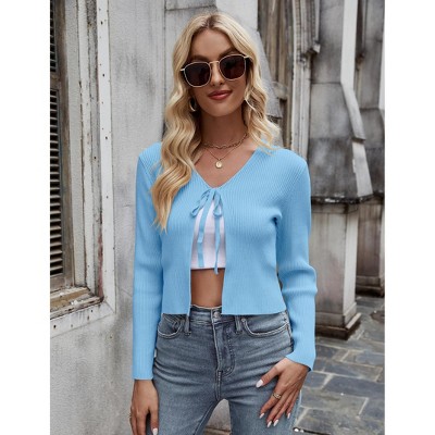 Coolmee Women's 3/4 Sleeve Cropped Cardigan Casual Sweaters Open Front Bolero Short Shrugs S Aquamarine