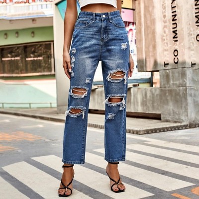 Stay effortlessly stylish with these women’s boyfriend jeans featuring a high-waisted, slim fit silhouette. Made from stretch denim, these jeans provide all-day comfort while hugging your curves in . The ripped and distressed details add an edgy, worn-in look, perfect for casual outings or street style. Pair with sneakers, boots, or heels for a versatile, trendy outfit.