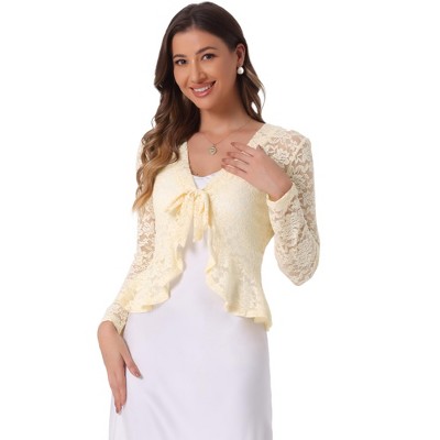 Coolmee Women's Crochet Cardigan Cover Up Open Front Long Sleeve Summer Cardigans - 1 of 4