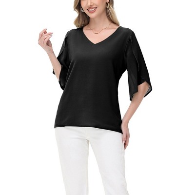 Coolmee Women's Cropped Tops Sweetheart Neck Ruched Slim Fit Lantern Long Sleeve Splicing Chiffon Square Back Front Drawstring Tie Blouses L Black