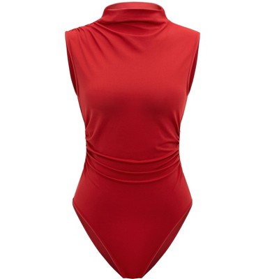 Coolmee Women's Mash Lace Bodysuits Sleeveless Deep V Neck Body Suits Claret XL