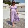Coolmee Women's Maternity Dress V-Neck Puff Sleeve Pleated Maternity Maxi Dress for Baby Shower Light Purple XXL