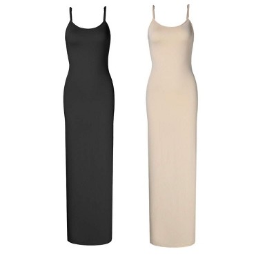 This essential slip dress provides the perfect foundation for your favorite outfits while offering comfortable all-day wear. The form-fitting silhouette creates smooth lines under dresses, skirts, or tunics without adding bulk. Thin adjustable straps allow you to tailor the neckline height to your preference while ensuring the dress stays securely in place. The full-length design offers complete coverage that works well under sheer or lightweight garments, while the body-hugging cut prevents bunching or shifting. Simple yet practical, this versatile piece transitions effortlessly from everyday wear under work clothing to special occasions under evening dresses. The slip design eliminates visible panty lines while maintaining a streamlined look that enhances your outer garments. Whether you need a smoothing layer for professional attire or a comfortable base for date night outfits, this reliable wardrobe basic simplifies your dressing routine. The neutral design works with multiple colors and styles in your wardrobe, making it an indispensable closet staple.