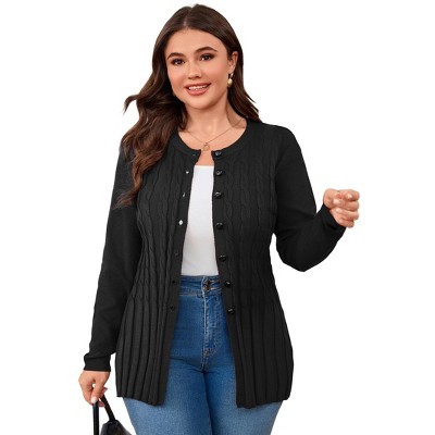 This plus size cardigan features a V-neck design that flatters various body shapes, while the button front allows adjustable closure options. Long sleeves provide practical coverage, and the soft knit construction ensures all-day comfort. Designed specifically for extended sizing, this sweater offers a comfortable fit that works well for layering or standalone wear, making it suitable for casual occasions where both style and ease are valued.