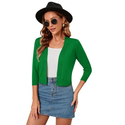Coolmee Women's Short Sleeve Cardigans Button Down V Neck Lightweight Casual Comfy Draped Pleated Hem Soft Cardigans Sweaters 2XL Green
