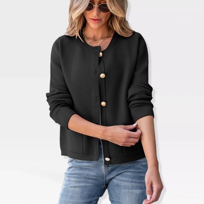Coolmee Women's Striped Cardigans Casual Hooded Sweaters Long Sleeve Button Down V Neck Classic Knit Cardigans Tops with Pockets M Brown