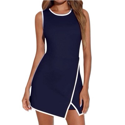 Coolmee Women's Tennis Mini Dresses Workout Built Golf Athletic Sleeveless One Piece Summer Active Romper Dress M Blue