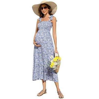 Embrace your pregnancy glow in this show-stopping maternity maxi dress! The off-shoulder ruffle bodice creates a romantic silhouette while the strategic ruching grows beautifully with your bump. The high side slit adds movement perfect for beach strolls or summer weddings.
