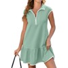 Coolmee Womens Midi Dress Casual Short Sleeve Quarter Zip Collar Ruffle Hem Pullover Short Dresses M Green