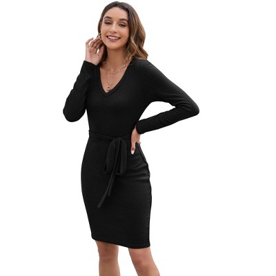 Embrace snug comfort in this ribbed knit mini dress, featuring a body-conscious silhouette that moves with inherent ease. Long sleeves offer essential coverage for cooler days, while the textured knit provides visual sophistication. Perfect for autumn strolls, weekend errands, or casual evenings, its versatile mini length layers beautifully with boots and tights, delivering cozy style that transitions smoothly through seasonal shifts.