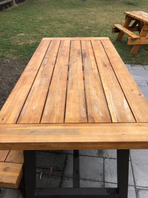 I love this set. It is beautiful, sturdy, and very easy to assemble. The chairs came pre-assembled, which was great. I have only had it together for a week and used it a handful of times, but chairs are very comfortable. The surface of the wood on the table and bench has a texture that I wasn’t expecting, but I like it. I hope it maintains its appearance and is easy to clean. Time will tell.