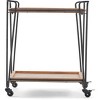 ClickDecor Cooper Bar Cart Black: Rubberwood Surface, Metal Frame, 2-Tier Beverage Serving Cart with Wheels