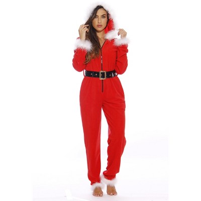 Adult Women's pajama jumpsuit in our super soft 95% cotton knit and 5% spandex with hood and kangaroo pockets.