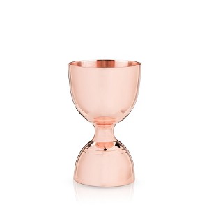 Create cocktails and other refreshments with this rounded copper double jigger, a throwback to post-Prohibition that sets an unparalleled standard for bar carts and bartenders alike. A slender hourglass frame makes mixing spirits a breeze, while inner rings mark the perfect pour. 1 oz and 2 oz capacities. Interior marks. Hand wash recommended.
