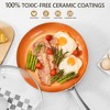 - ULTRA NON STICK & SCRATCH RESISTANT COATING - The copper frying pan is made of ceramic & titanium coating which is ultra non-stick and scratch resistant. It ensures effortless food release - everything just slides right off, with less oil or butter. The beautiful ceramic coating is non-toxic & PTFE and PFOA free. No chipping, no peeling or flaking. Cleans up easily.