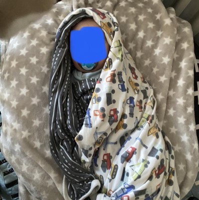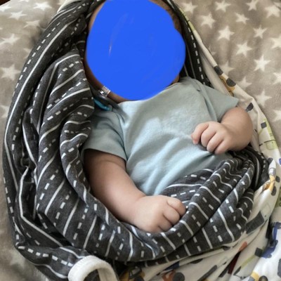 This is by far my favorite baby blanket. It’s the only one that keeps my baby warm but doesn’t get him sweaty. I actually wrap him up in this almost like a swaddle for naps since he is a winter baby. It is larger than most baby blankets, more the size of a crib comforter, but trust me you’ll need the extra length when they start kicking. It doesn’t fade in the wash. It’s super soft, stretchy, and it has weight to it. So when I lay it on him it’s very soothing and he goes right to sleep. Can’t say enough how much a like it and will definitely be getting another one and trying out the bibs and burp clothes.