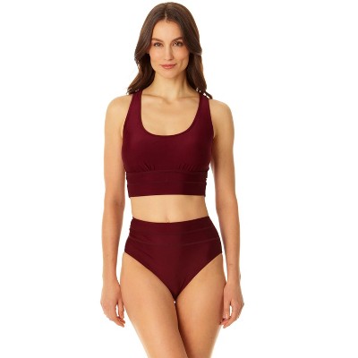 Coppersuit Women's Colorblock Zip Longline Bra Swim Top-Violet Glow, XL