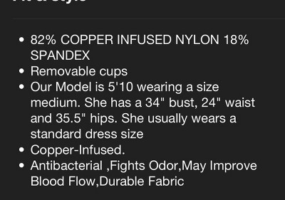 • 82% COPPER INFUSED NYLON 18% SPANDEX