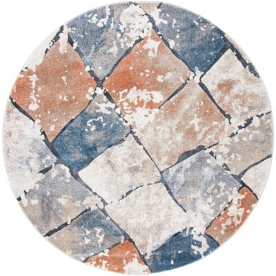 Coppertone CPN324 Power Loomed Area Rug - Ivory/Navy - 6'7" round - Safavieh.