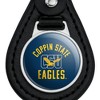 - QUALITY MATERIAL: Our durable round keychain is crafted from leather with a glossy resin-topped emblem featured design shown on one side. Approximately 1.5" (3.8cm) x 2.5" (6.4cm) in overall size, emblem is 1" (2.5cm)..