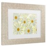 This ready to hang, gallery-wrapped art piece features flat, white daisies with yellow centers overlapping each other against a bright white background.Growing up in her father's photo studio with cameras and photos everywhere around, Cora absorbed both the technical and esthetical side of photography from a very young age. After high school she did a master in floral design as well as, out of love and interest for art and history, an academic study cultural sciences. About ten years ago, she got the chance to combine her interests and skills in a company of her own. She started with botanical and garden photography, but over the years her work developed steadily into digital fine art with more abstract designs. Her current work ranges from atmospheric still lifes in natural light to intricate, technically sophisticated digital fusions, all based on self-shot photographic images. She is inspired by natural, organic shapes. Creating evocative images that distance us from the daily grind, for a moment, is what drives her.Giclee (jee-clay) is an advanced printmaking process for creating high quality fine art reproductions. The attainable excellence that Giclee printmaking affords makes the reproduction virtually indistinguishable from the original piece. The result is wide acceptance of Giclee by galleries, museums, and private collectors. Gallery wrap is a method of stretching an artist's canvas so that the canvas wraps around the sides and is secured a hidden, wooden frame. This method of stretching and preparing a canvas allows for a frameless presentation of the finished painting.
