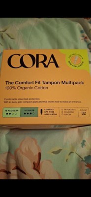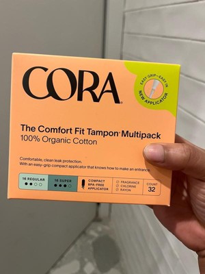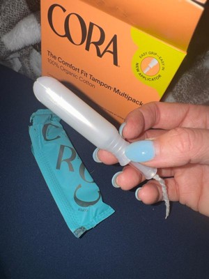 [This review was collected as part of a promotion.] Cora tampons came fragrance free and use 100% organic cotton do the material. Easy application and comfortable to wear during my busy schedule. Easy grip makes it easy to apply and very simple to remove.