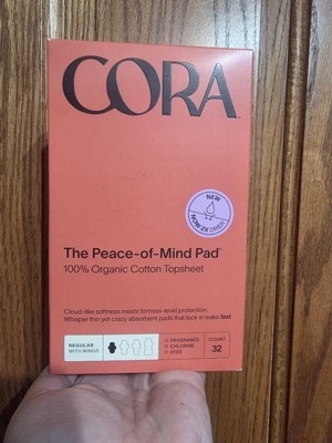 [This review was collected as part of a promotion.] Cora Peace of Mind Pads (Regular Absorbency) are thin yet absorbent, offering reliable protection without feeling bulky. They stay in place, feel soft on the skin, and are made with organic cotton. Also great for sensitive skin. A comfortable, clean option for everyday period protection.