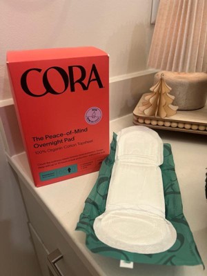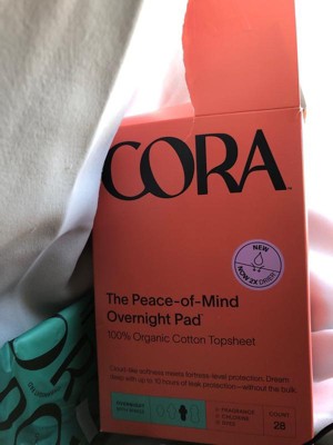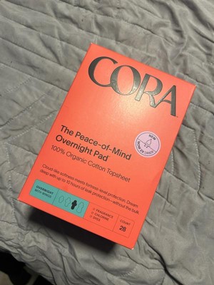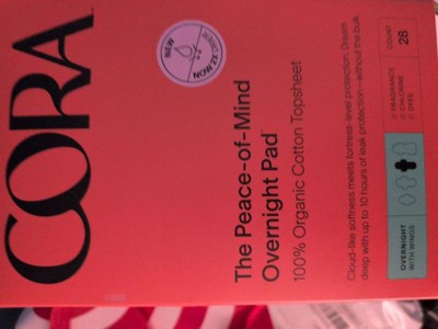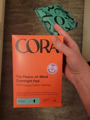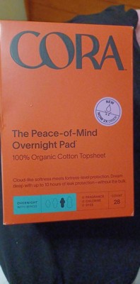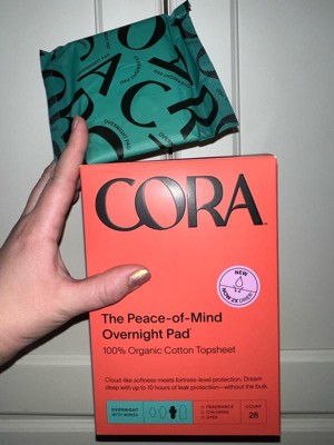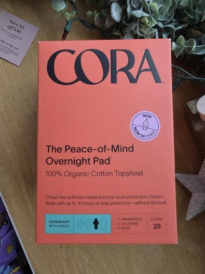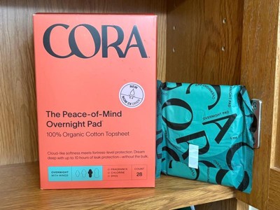 Cora Organic Cotton Ultra Thin Overnight Fragrance Free Pads with Wings for Periods - Super Absorbency - 28ct