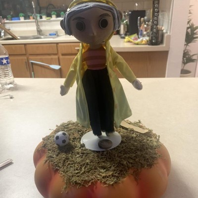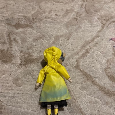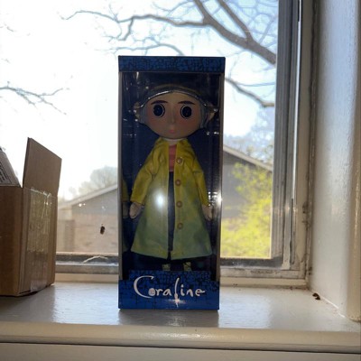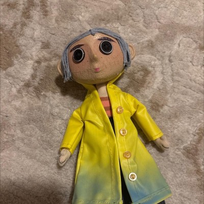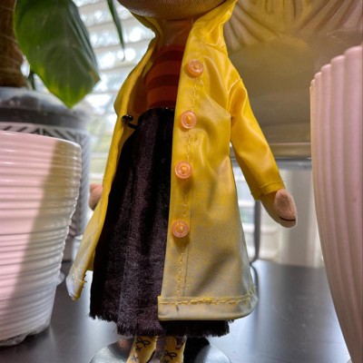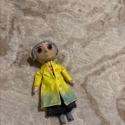 Bring home the weird world of Coraline! This detailed replica of Coraline's doll comes from the stop-motion movie adaptation of Neil Gaiman's fun and spooky book. It lovingly reproduces the doll as seen in the film, from the yarn hair and button eyes to the removable yellow raincoat. The doll has a hidden wire armature so you can pose her arms, legs, even her raincoat! Over 9" tall. A great collectible for fans of all ages.