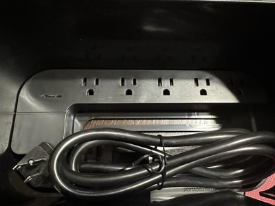 Really nice surge protector box. Does a great job of organizing and hiding cords for up to 5 different plugs. Has option to pull cords out either side and provides wide slots to easily exit the box. Great product would definitely recommend.