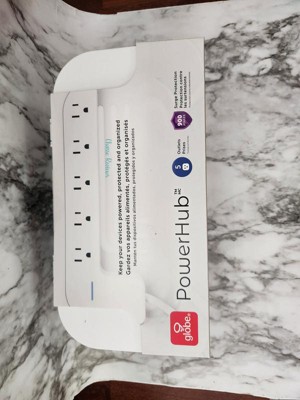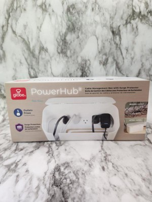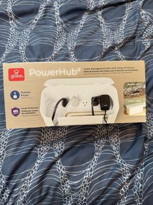 The Globe PowerHub is a wonderful cable management box with a 900 joules surge protector inside. It contains 5 outlets and it helps to keep your devices powered, protected and organized. It features a space plug which allows for those hard-to-reach power outlets. The cord is 6 feet long and is a 14/3 gauge. I really like this cable management box. It has a vented bottom, came with the surge protector, and has the wall flush plug. It makes things look more neat under my work desk. I would buy more of these for my home as well.