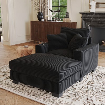 Corduroy Chaise Lounge Chair Oversized Sofa Bed with Deep Seat & 2 Pillows, No Assembly Required - ModernLuxe