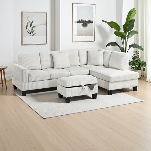 Corduroy L-Shaped Modular 3-Seater Sectional Sofa with Storage Ottoman