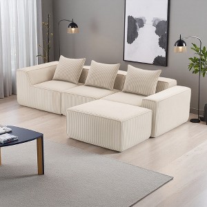 Corduroy Modular L-Shaped Sectional Sofa with Corner Design