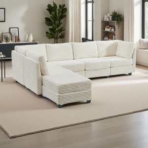 - Effortless Assembly: Modular design allows for tool-free assembly. Easily set up your sectional sofa in just 30 minutes. Luxurious Corduroy Fabric: Crafted with premium corduroy that is soft, breathable, wash-resistant, and built to last. Its thick texture resists wear, wrinkles, and daily use. Pet-Friendly Durability: Scratch-resistant and easy to clean, the corduroy fabric repels pet hair and withstands playful paws, keeping your sectional sofa looking pristine. Comfortable Sectional Sofa: Deep, spacious seats with plush yet supportive cushions provide all-day lounging comfort, perfect for family gatherings or solo relaxation.