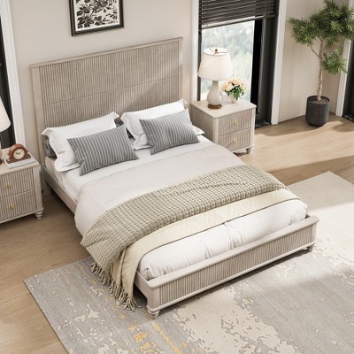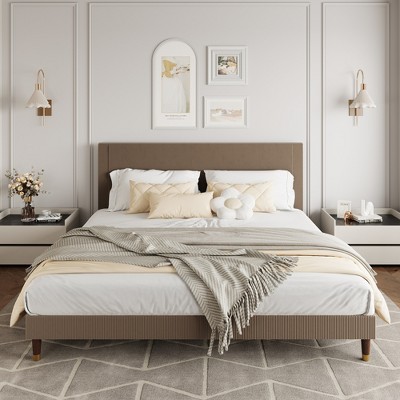 Corduroy Upholstered Platform Bed Frame with Headboard – Modern Low Profile, Sturdy Metal & Wooden Slats, No Box Spring Needed – Brown, King Size