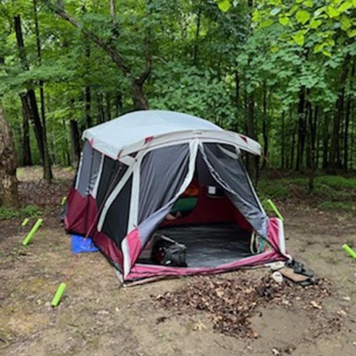 This tent has received positive feedback for its spacious design, easy setup, and durability in various weather conditions. Guests appreciate the separate screen room, which serves as a mudroom and play area, enhancing the camping experience. Many have noted its ability to withstand rain and wind, making it a reliable choice for family camping trips. However, some guests have mentioned challenges with pole assembly and minor leaks during heavy rain, suggesting room for improvement.