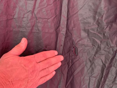 Received our wine colored purchase 6/4/24 and set it up in the back yard. Forecast predicted showers and thunderstorms the next couple days so wanted to put it to the test. IT PASSED with flying colors IMO. Predicted thunderstorm came through the night of 6/5 in our north Alabama county. Watched the tent sway with wind gusts of, I’d say, 40mph. Was a bit concerned as I was watching but it held up and stayed anchored. Now, I did use Coghlans 7” aluminum stakes as opposed to those provided and insert on a 30-45 degree angle as well.