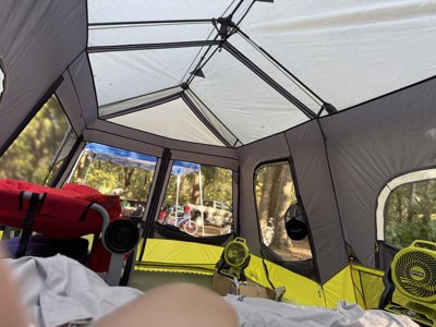 Borrowed this from a friend for 5-day camping. "Instant" = so Easy, especially with another person helping me; this feature is The MVP. I loved the multiple entry- and all the window- options, so I could air out my tent really well when weather was good. The rain fly could be better/waterproof, as I definitely saw lots of little rain drops appearing on the tent floor somewhat regularly; it wasn't a hurricane either, it was just an average/moderate/steady rain for a few hours, then decreased to light rain/drizzle off-and-on. I would've liked the rain fly to extend past at least one entrance so that I could leave my wet shoes outside the tent without them getting rained on; I used the tent's room divider for this purpose (hung up with a bungee laundry line I had packed), which worked okay. The tent didn't flood, but it was a bit annoying having rain drip all over the contents of my tent. I'd recommend bringing an extra tarp or 2 just in case of wet weather, but other than that--- I WOULD recommend this tent for mostly-dry-forecasted camping!